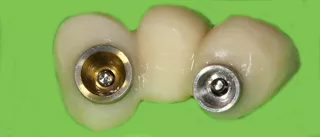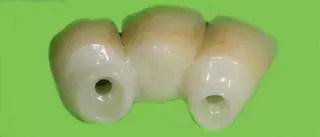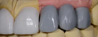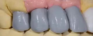 15. Same emergence profile between resin and zirconia bridges. Enameling only on the vestibular surface. The zirconia was carefully polished where it contacted soft tissue.