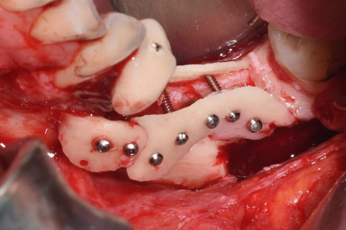Autogenous bone grafts involve taking bone from the patient himself, generally from the mandible, chin or iliac crest, and transplanting it into the deficient area. This technique has several significant advantages over other methods of bone regeneration, such as the use of allografts, xenografts or synthetic biomaterials. Unlike bone substitute materials, autogenous grafting is osteogenic, thus ensuring better integration and faster and more effective bone regeneration. Autogenous bone also has intrinsic osteoinductive and osteoconductive properties, promoting the growth and differentiation of bone cells [3].