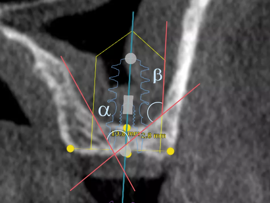 The Alpha angle, formed by the anterior lateral wall of the maxillary sinus and the palatal wall, is favorable at > 60° [1].