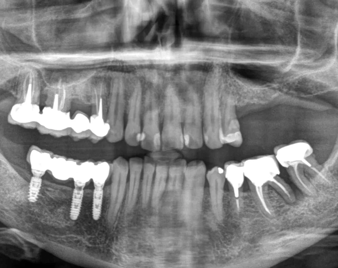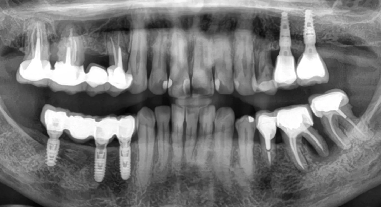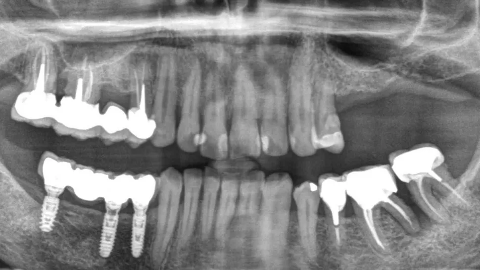 A 60-year-old female patient presented at our office. She was in good health and a non-smoker, and had healthy periodontal tissue and good oral hygiene. Teeth 25, 26, and 27 had been missing for several years, and there was insufficient bone to place implants. However, quadrant four had been the priority, with 3 Axiom® REG implants being placed there in 2019. An inspection of quadrant three revealed significant damage to 36 and misalignment of 37.