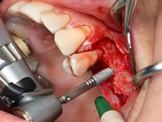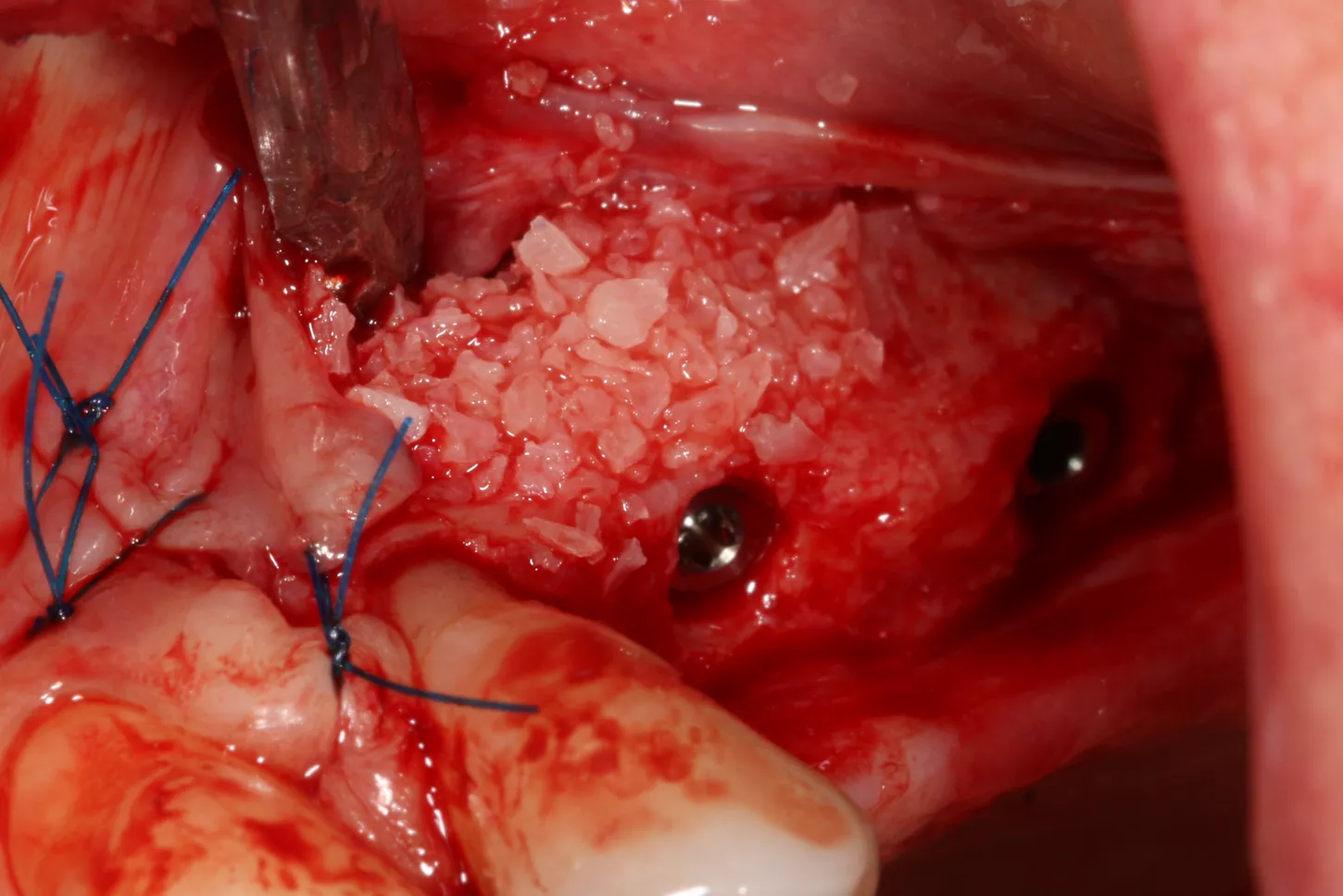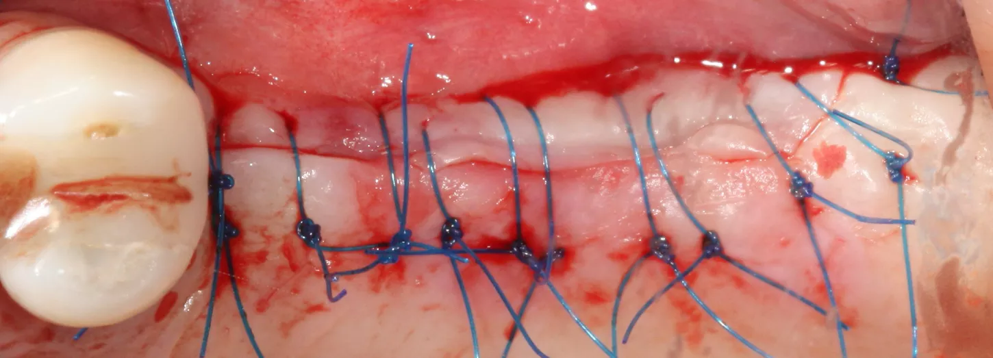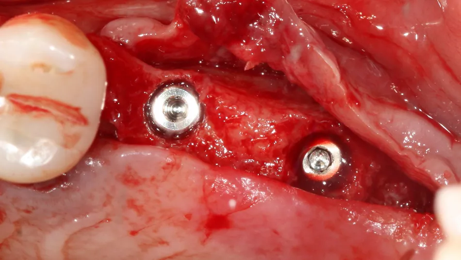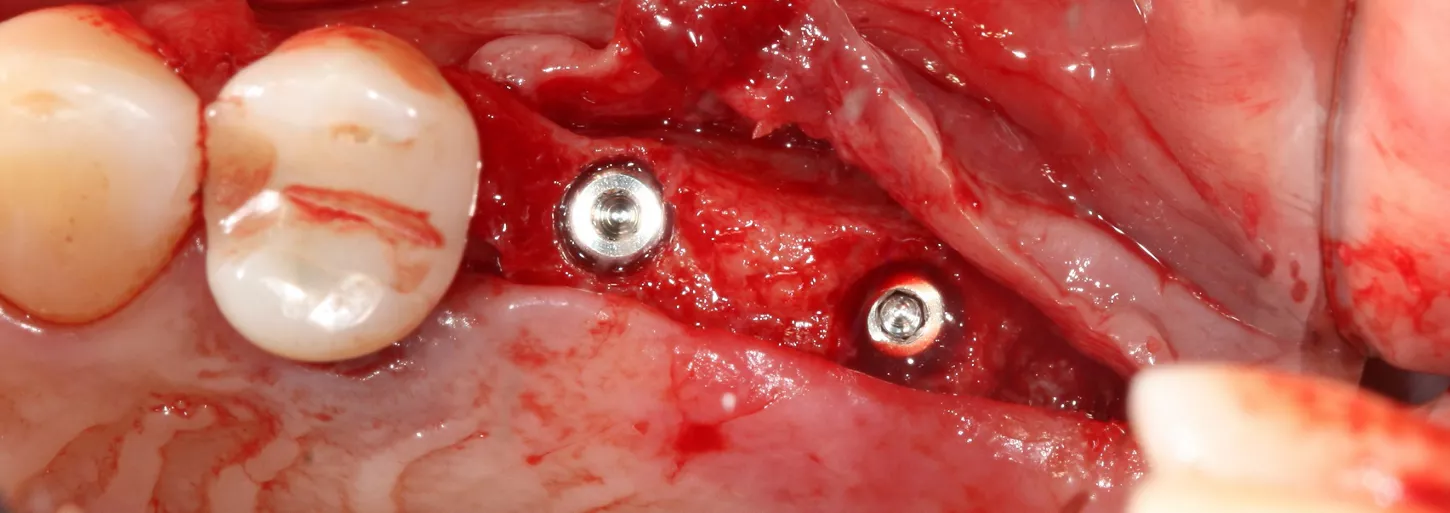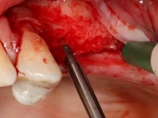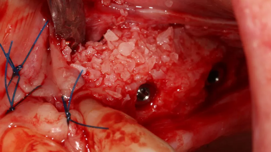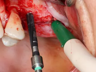 14. Graft material added to the vestibular aspect of 25 to offset the bone loss and ensure long-term implant survival.
