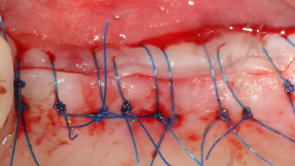 15. The surgical site was closed with 5/0 non-absorbable monofilament polypropylene sutures, removed 10 days postoperatively. The implants were buried with their closure screws.
