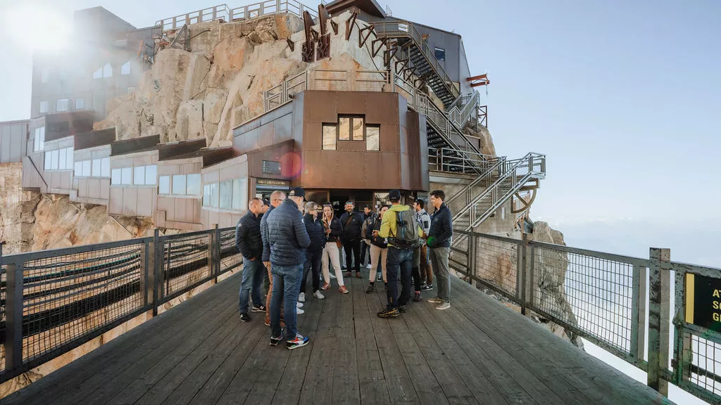 The programme included a private visit to the Aiguille du Midi, led by high mountain guides, with a breathtaking view of Mont Blanc at sunset and the Chamonix valley.