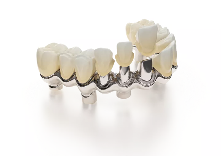 Armature implantaire en titane composé de moignons individuels pour réaliser une prothèse dentaire scellée, partielle ou complète, avec des couronnes individuelles scellées.