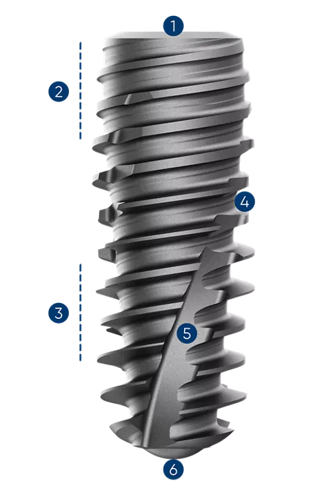 Axiom X3® dental implant is a unique design for controlled insertion and optimal stability in a wide range of indications, with maximum bone preservation regardless of density.