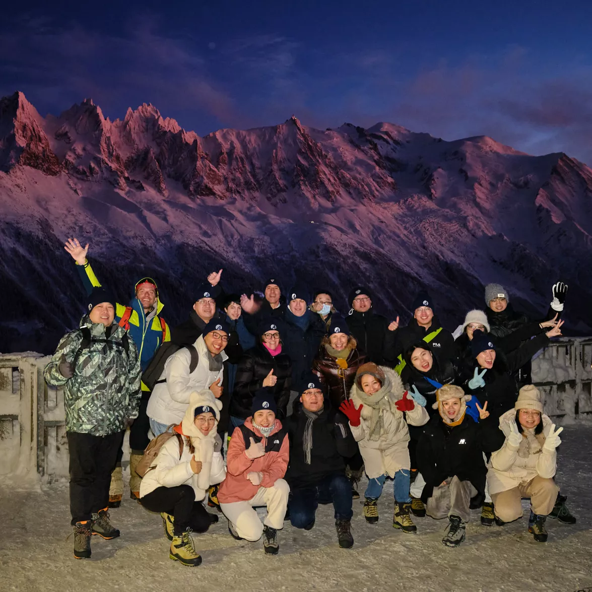 After an unforgettable cable car ride up to La Flégère, nestled at an altitude of 1913 meters, all participants were treated to a magnificent sunset over the Mont Blanc Massif, creating a moment of wonder and conviviality.
