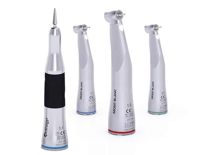 The Anthogyr Mont Blanc® range comes into 3 speed ratios, Red (1:5), Blue (1:1) and Green (5:1), and is available with or without light.