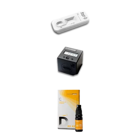 Wissenschaftliche Studien haben nachgewiesen, dass ein ausreichender Vitamin D Spiegel einen maßgeblichen Einfluss auf den Erfolg von zahnärztlichen Behandlungen hat. Mit dem Vitamin D Werkzeugkasten bieten wir eine problemlose Integration für Ihre Kunden für den Test, die quantitative Analyse sowie die Optimierung des Vitamin D3+K2-Haushalts.