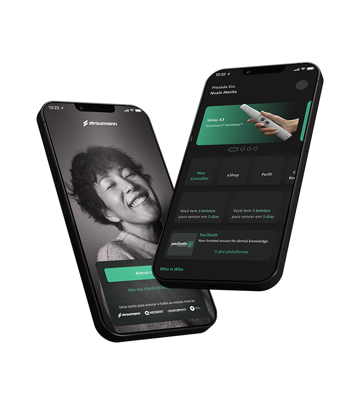 O Straumann App oferece recursos para simplificar sua gestão: pagamentos centralizados, acompanhamento de pedidos e ferramentas que otimizam seu fluxo de trabalho, tudo com a qualidade e inovação Straumann.