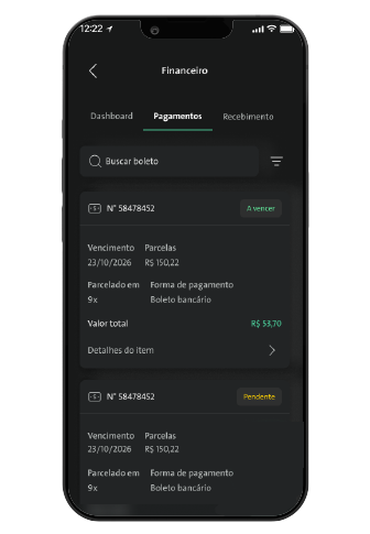 Acesse os boletos pendentes, realize pagamentos com facilidade e acompanhe os pagamentos ClearCorrect.