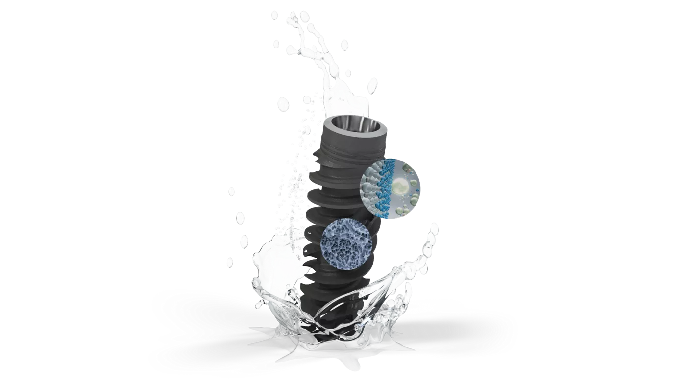 A superfície hidrofílica não só acelera o processo de osseointegração, mas também contribui para uma recuperação mais rápida, pois reduz o tempo de cicatrização e melhora a experiência do paciente.