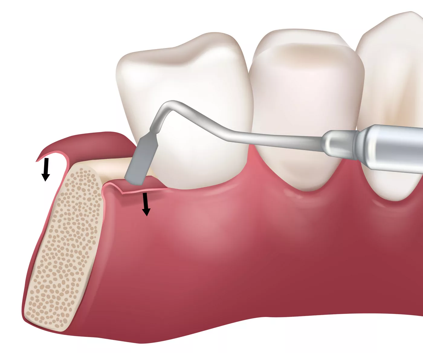 Em alguns casos, é feita também a redução de bolsas periodontais, com a remoção de tecido inflamado, para diminuir a profundidade das bolsas e facilitar a higienização. Essa fase visa restaurar a estabilidade do periodonto e impedir a progressão da doença.