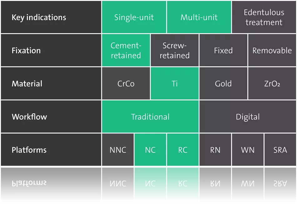 Easy handling of pre-fabricated copings. Easy choice of components thanks to color-coding.
