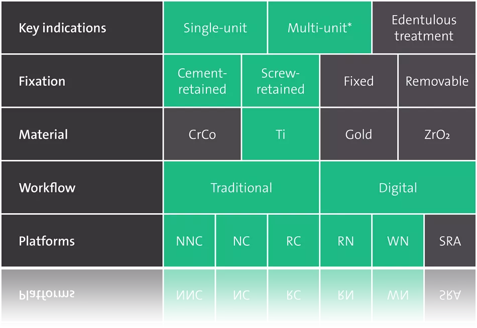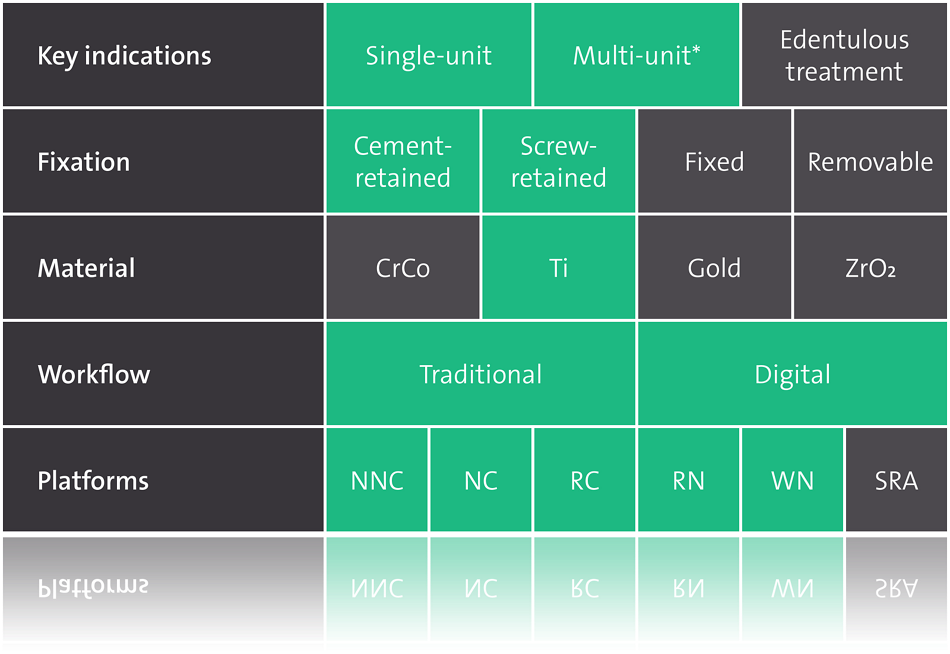 *Only cemented multi-unit restorations possible.