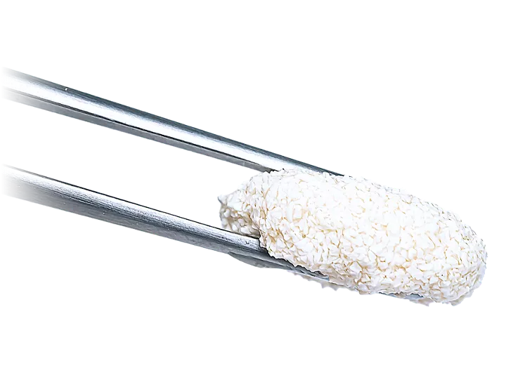 Grâce aux propriétés hygroscopiques importantes de l’acide hyaluronique, cerabone® plus forme, après hydratation, une masse collante et malléable permettant une application plus facile par rapport aux greffes osseuses particulaires classiques. cerabone® plus permet un prélèvement facile, une application précise des particules, un comblement efficace des défauts et un contour facile des défauts.