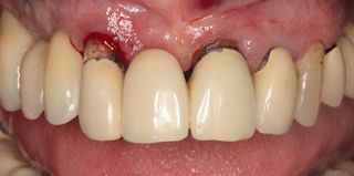 Il paziente è un uomo di 58 anni. Dopo il primo consulto, sono emersi una forte mobilità del ponte 12-x-21 e dolore al dente 22, che risultava danneggiato (Fig. 1). I denti erano stati trattati circa 25 anni prima; inoltre, il paziente desidera anche migliorare l’estetica della regione anteriore. Nell’anamnesi del paziente non vi sono patologie sistemiche o localizzate, e il paziente non sta assumendo alcun farmaco.