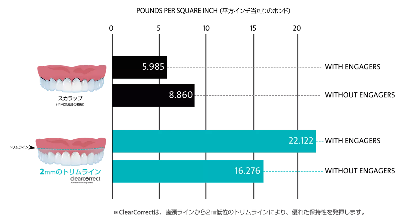 歯頚ラインから2㎜低位のトリムラインが、優れた保持性を発揮すると言われてます。