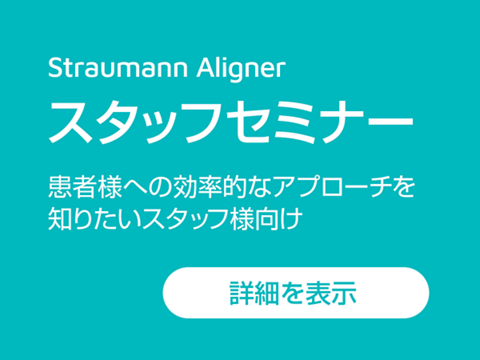 アライナー矯正についてイチからしっかり学びたいという方は「Straumann Aligner Starter Course」を、アライナー矯正を始めたけれどももっと知識を習得したい、どのような症例が適応できるのか知りたいという方は「Straumann Aligner Club」の受講をお勧めします。また、クリニック全体で患者様への効率的なアプローチへつなげるため、スタッフ様向けの「Straumann Aligner スタッフセミナー」もご用意しております。