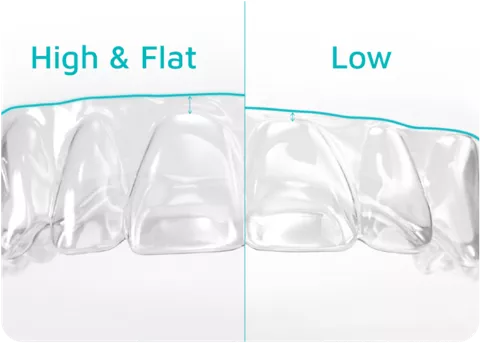 歯肉縁を超えて設計され、2種類の高さから選択できるClearCorrectのパフォーマンストリムラインでは、コントロールが向上し、一貫して均一な力を掛けられるようになるため、予測実現性の高い歯牙移動が実現されます。