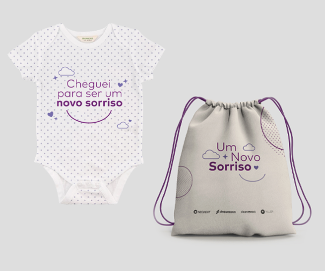 O kit, voltado a mãe e pais de recém-nascidos, é composto por um body personalizado (para bebês de até 4 meses), uma cartilha com instruções para a saúde bucal do bebê, além de orientações sobre o que nossa empresa oferece aos pais.