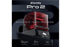 Der Pro 2 kombiniert die von SprintRay zum Patent angemeldete Optical Panel-Technologie mit 385 nm UV-A-Licht und setzt so neue Maßstäbe in Genauigkeit und Durchsatz.