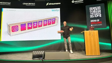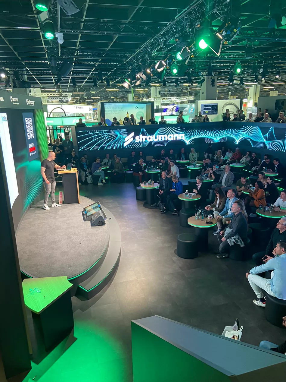 Zahnarztpraxis goes Instagram: Bei der IDS 2023 versammelten sich Gäste in der Arena of Excellence der Straumann Group, um von Felix Beilharz, „Germany’s Digital Marketing Rockstar“ (Wirtschaftszeitschrift Forbes), zu erfahren, wie Instagram wirklich geht.