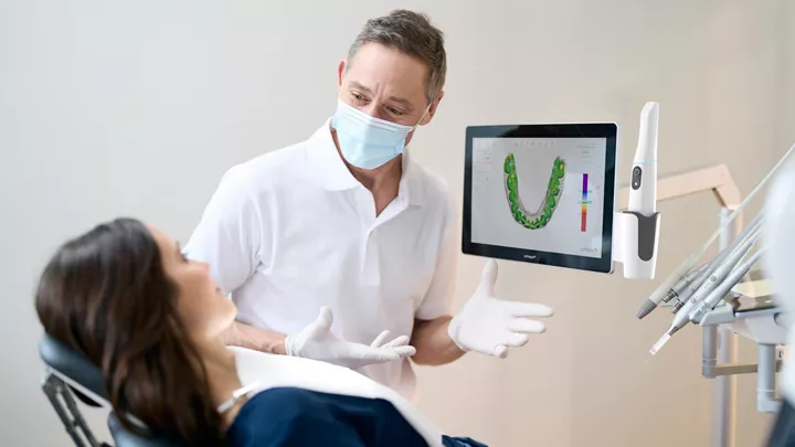 Steigern Sie die Behandlungsakzeptanz und das Vertrauen Ihrer Patient*innen, indem Sie ihnen TRIOS® 3D-Farbscans zeigen und den konkreten Behandlungsbedarf erläutern.