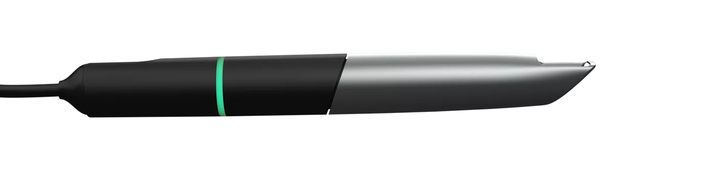 Mit dem ergonomisch geformten Handstück aus hochwertigen und angenehmen Materialien und dem beeindruckend geringen Gewicht von nur 130 g können Sie digitale Scans einfach, schnell und präzise durchführen. Der farbige Leuchtring und das akustische Signal bestätigen die erfolgreiche Erfassung der Scandaten und erhöhen dadurch die Geschwindigkeit Ihrer Abformung.