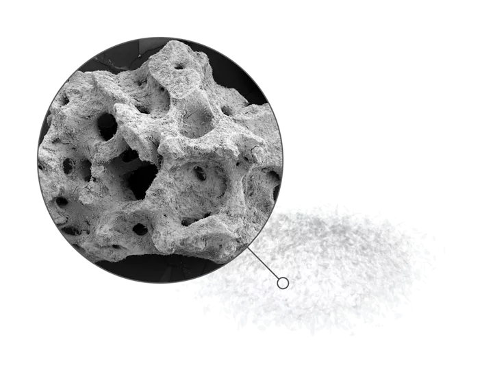 The human-like bone structure of cerabone® with its three-dimensional pore-network and bioactive surface result in excellent osteoconductive properties. It promotes the adhesion and invasion of bone forming cells resulting in complete integration of the granules into newly formed  bone matrix.