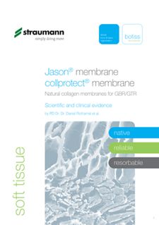 The Jason® membrane is a native collagen membrane obtained from porcine pericardium, developed and manufactured for dental tissue regeneration. The advantageous biomechanical and biologic properties of the natural pericardium are preserved during the production process. Due to these unique properties, the Jason® membrane exhibits beneficial handling characteristics such as distinct tear resistance, despite its low thickness of only 0.1 to 0.25 mm, and easy drapery and adaptation to the bone surface. Due to its natural comb-like and multi-layered collagen structure (with an increased content of collagen type III), the botiss Jason® membrane shows a slow degradation, making it the recommended choice in our portfolio particularly for large augmentative procedures.