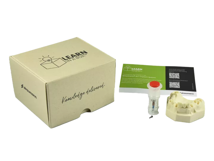 The Learn in a Box for the Straumann® BLT Implant System gives you the opportunity to experience the placement of a BLT implant in a healed site. A step-by-step hands-on video guides you through the implant bed preparation, implant insertion and placment of a cover screw. Additional digital learning content such as drilling protocols and basic information can be downloaded via QR code.
