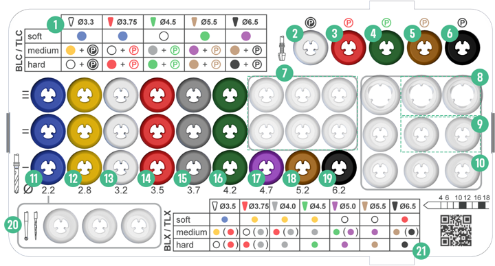 For BLC, TLC, BLX, TLX implants with diameters 3.3mm, 3.75mm, 4.5mm, 5.5mm and 6.5mm.