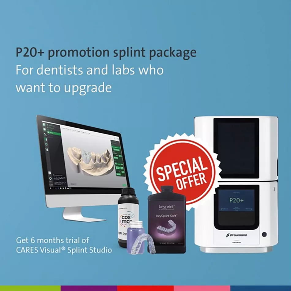 Straumann® P series printers offer a combination of high quality, flexibility, and efficiency for operations of any size. The P20+ is perfect for those looking to try 3D printing for the first time, offering an economical solution without compromising quality. The P30+ offers more advanced functionality, such as semi-automated printing and increased output.