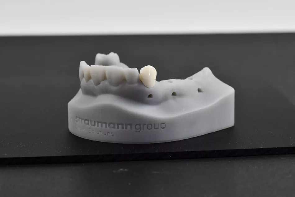 SLS technology uses lasers to fuse nylon-based powders to print objects. This process does not use support structures for additive manufacturing. SLA, on the other hand, uses a moving UV laser to cure resins into objects. Conversely, DLP utilises stationary UV light from a projector to cure full layers of resin. Demonstrating the benefits of 3D printing, earlier this year, a 3D printed temporary crown using the Straumann composite resin P pro Crown & Bridge was created to support the process of immediate implant restoration. During this process, the Straumann® CARES® P20 3D printer, which is built upon DLP technology, was used. This case states that the use of DLP technology enabled accelerated production as opposed to SLA and conventional methods.