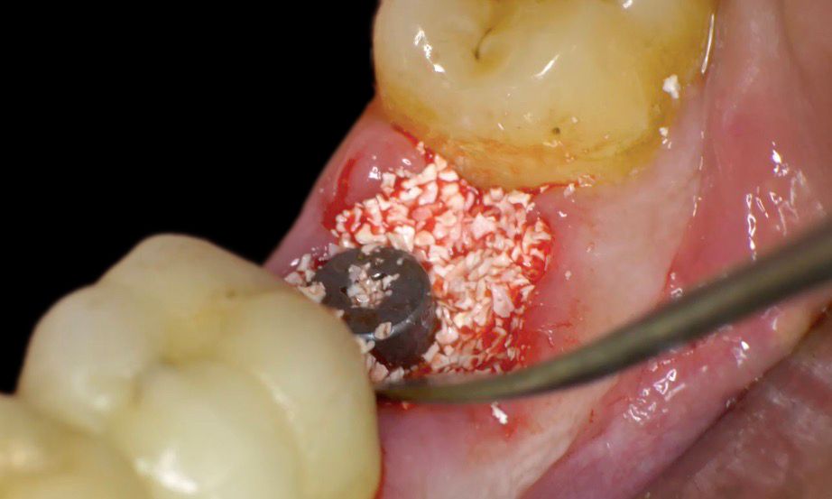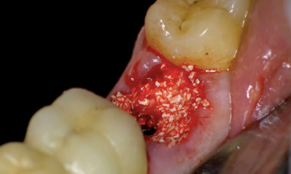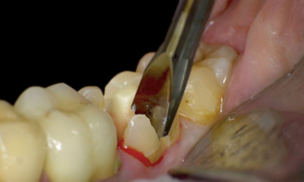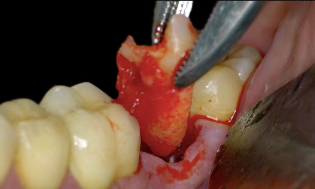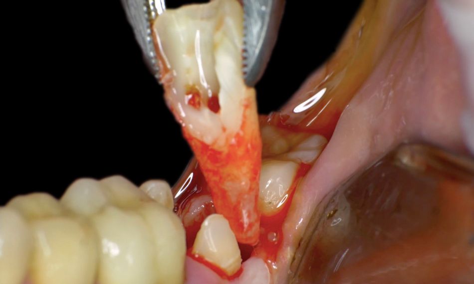 Radiographic evaluation confirmed the vertical fracture and demonstrated adequate vertical and horizontal bone dimensions, indicating favorable conditions for immediate implant placement.