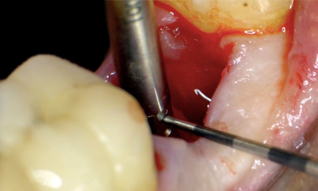 Intraoral examination revealed a vertical fracture of tooth #37, with probing depths up to 12 mm, bleeding on probing, and pain on percussion. The tooth was non-responsive to cold testing with CO₂.