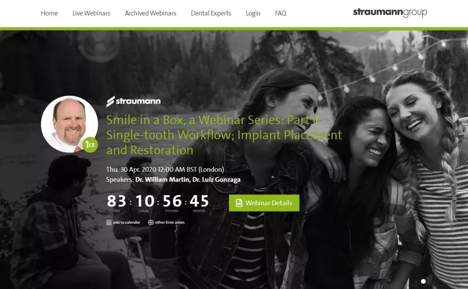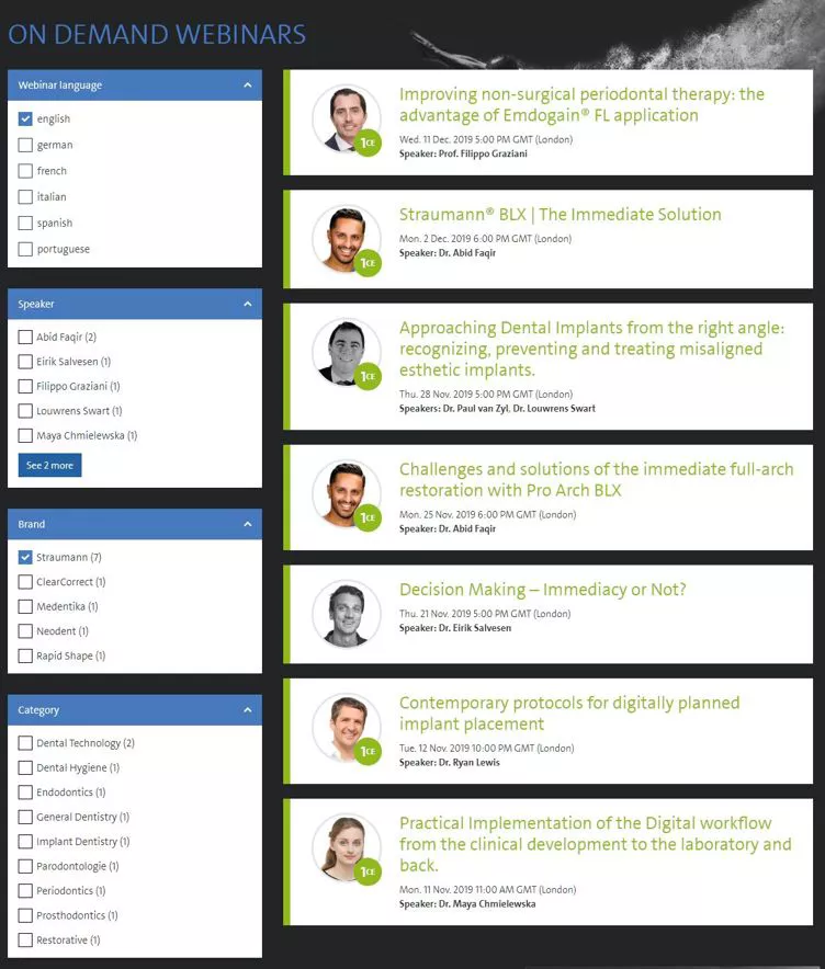 Free live and on demand webinars on the new Straumann platform are available for all registered users; 24/7, globally. Within 24 hours after the live sessions, a fully edited version of the webinar will be available for viewing in the archived webinar section.