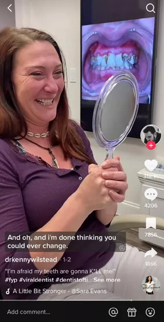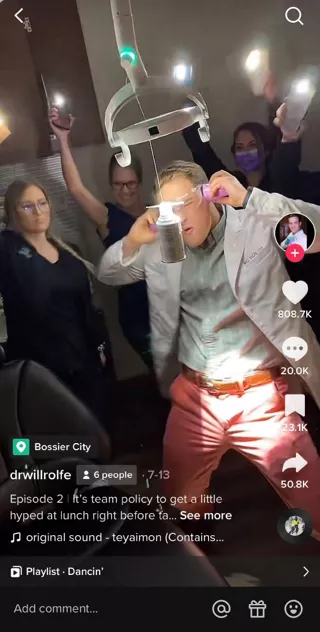 A dentist in the video below did a duet video from a TikTok creator who was living with her mouth wired shut after jaw surgery. The doctor used the opportunity to offer a little expertise on the topic. Frequently featuring familiar faces from your practice will further engage the audience and build trust with existing and future patients.