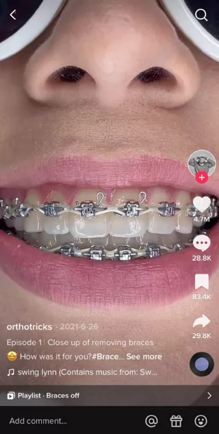 Showcasing your dental specialty on TikTok is a great way to show your audience how well you do your job. Take a look at the video below. The orthodontist show followers what it looks like to remove braces.