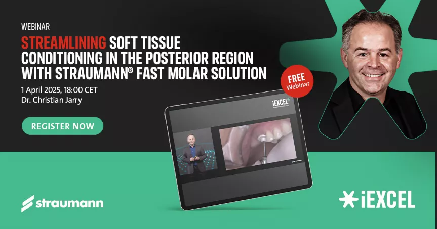 April 1, 2025 – 6:00 PM CET. This insightful session will dive into one of the most effective and efficient ways to enhance soft tissue conditioning in the posterior region, especially when conditions allow for immediacy. In today’s modern dentistry, patient-centered benefits such as gingival contour preservation and reduced morbidity are essential. These advantages make immediate implant solutions the treatment of choice in many cases. Dr. Jarry will guide participants through the science and practical application of Straumann’s Fast Molar Solution, showing how Anatomic Healing Abutments can streamline the process and optimize outcomes from the very first day.