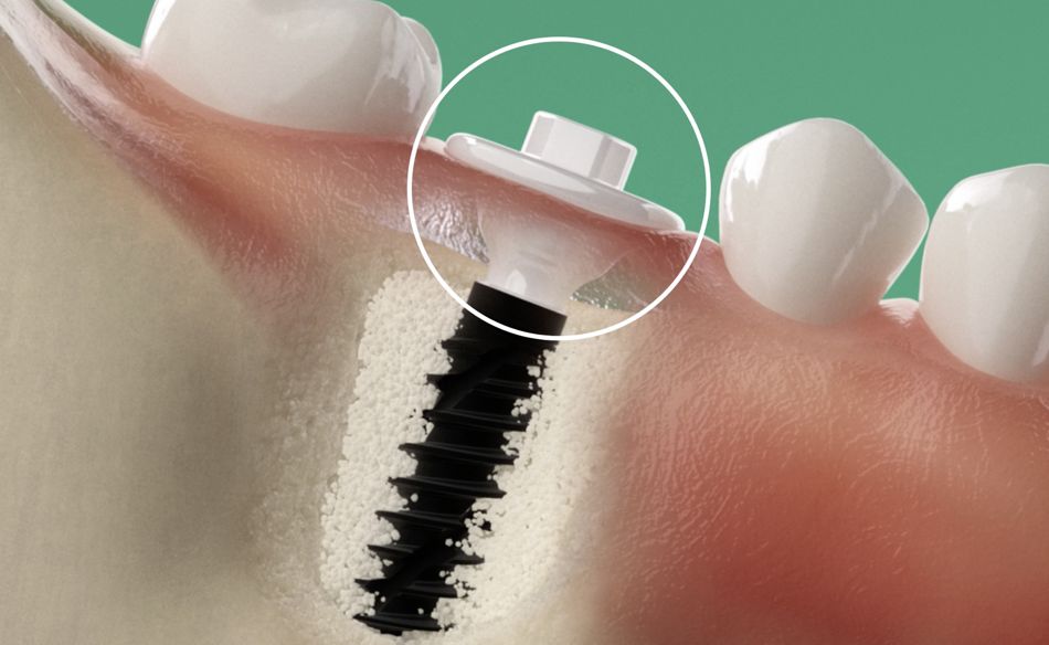 Fig. 1: 1. PLACE: Immediate soft tissue stabilization after placing the Straumann(R) Anatomic Healing Abutment XC.