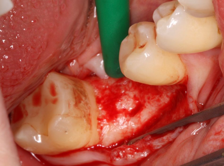 The patient was prescribed chlorhexidine rinses 0.12% twice a day for a week and ibuprofen 400 mg every 8 hours in case of pain. Wound healing was uneventful and sutures were removed after 7 days. The patient reported no discomfort after surgery.