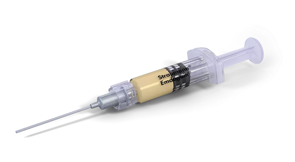 Straumann® Emdogain® is a unique gel containing enamel matrix derivative of porcine origin. The main component is amelogenin, which has demonstrated the ability to stimulate certain cells types involved in the healing process of soft and hard tissues towards a regenerative pattern, thus leading to true periodontal regeneration1 and accelerated oral wound healing2. Emdogain® has a respected legacy as an irreplaceable tool for periodontology backed by extensive and long-term clinical documentation including studies with 10 years follow-up3,4. Over the past 25 years it has been used in over 2.5 million patients5 and it is documented in over 1,000 scientific publications, including over 600 clinical papers6. For more information: click here.