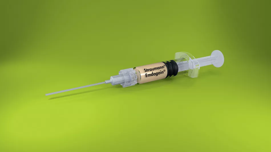 Straumann® Emdogain® is one of the best documented products in oral tissue regeneration. Its excellent clinical tolerability1,2 has been demonstrated in over two million surgical applications. Emdogain® contains enamel matrix proteins (amelogenins). When applied to the wound, these proteins form an extracellular matrix that stimulates cells and processes that are fundamental for wound healing3. These properties make Emdogain® a unique solution to stimulate and accelerate the healing of wounds and regeneration of tissues.