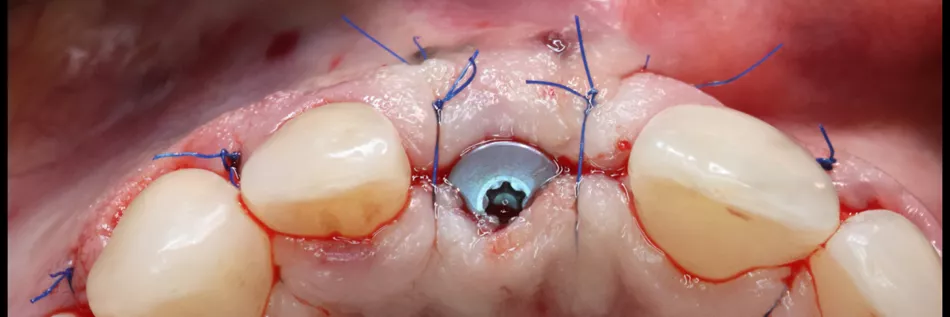 The flap was reapproximated following implant placement and esthetic crown lengthening, demonstrating proper flap closure and tissue adaptation (Fig. 23).
