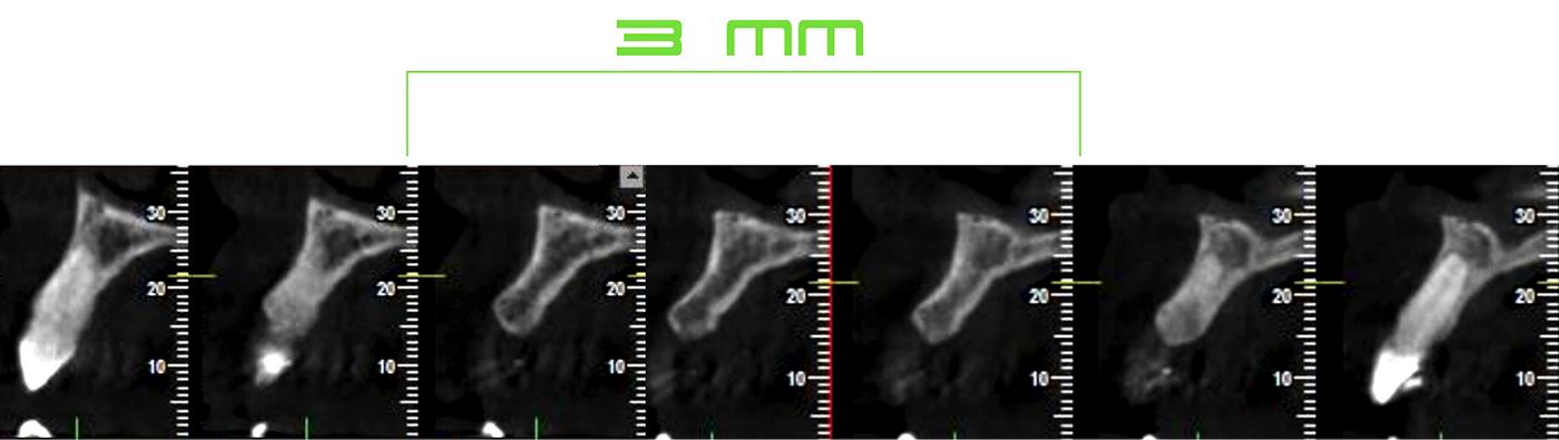 After an assessment of periapical radiography (Fig. 6), cone beam computed tomography (Fig. 7-8) and a clinical evaluation of tooth 12, it was decided that a Straumann® BLT Ø 2.9 mm was a good solution for this clinical case due to the narrow interdental space and limited horizontal bone available (5.25 mm).