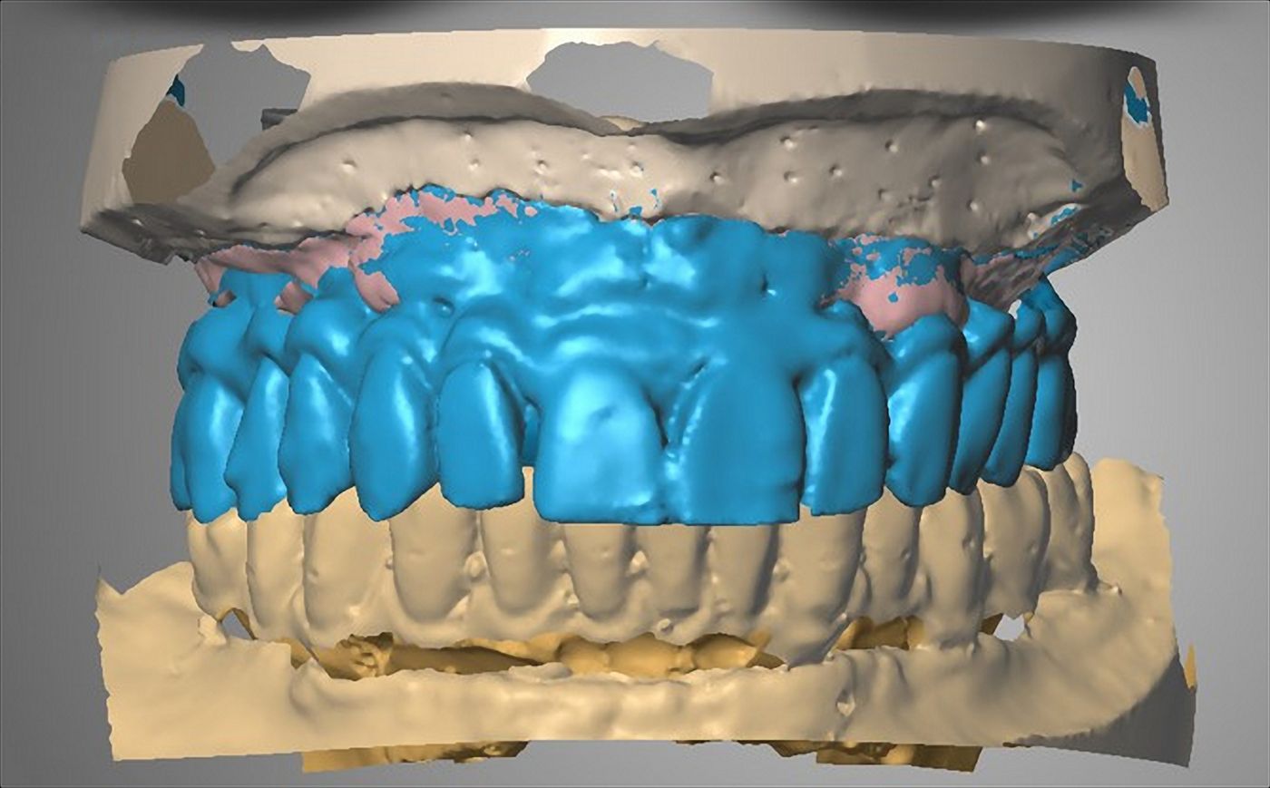 We reproduced the vertical dimension with the provisional restoration and then duplicated it with a radiopaque polymer (Vivo TAC, Ivoclar Vivadent) so as to obtain a digital wax-up (Figs. 22,23).