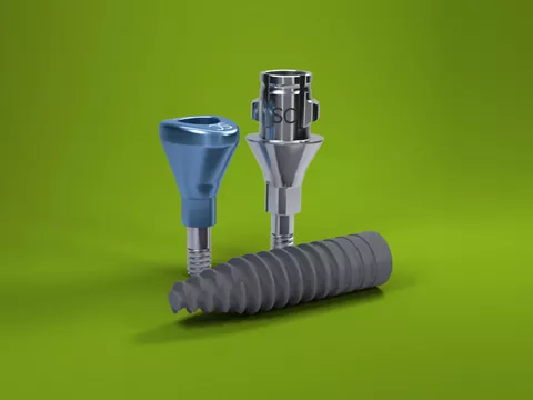 * This re-aligning of the implants can be avoided with two different abutment version (A or B). In order to find the correct abutment version, check the height markings (three dots) on the Loxim Transfer Piece. If the height markings are oriented buccally use A-type abutments. If the height markings are not oriented buccally use B-type abutments.
