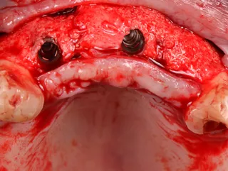 Fast resorbing β-tricalcium phosphate (β-TCP) allows for regeneration of vital bone during healing time.