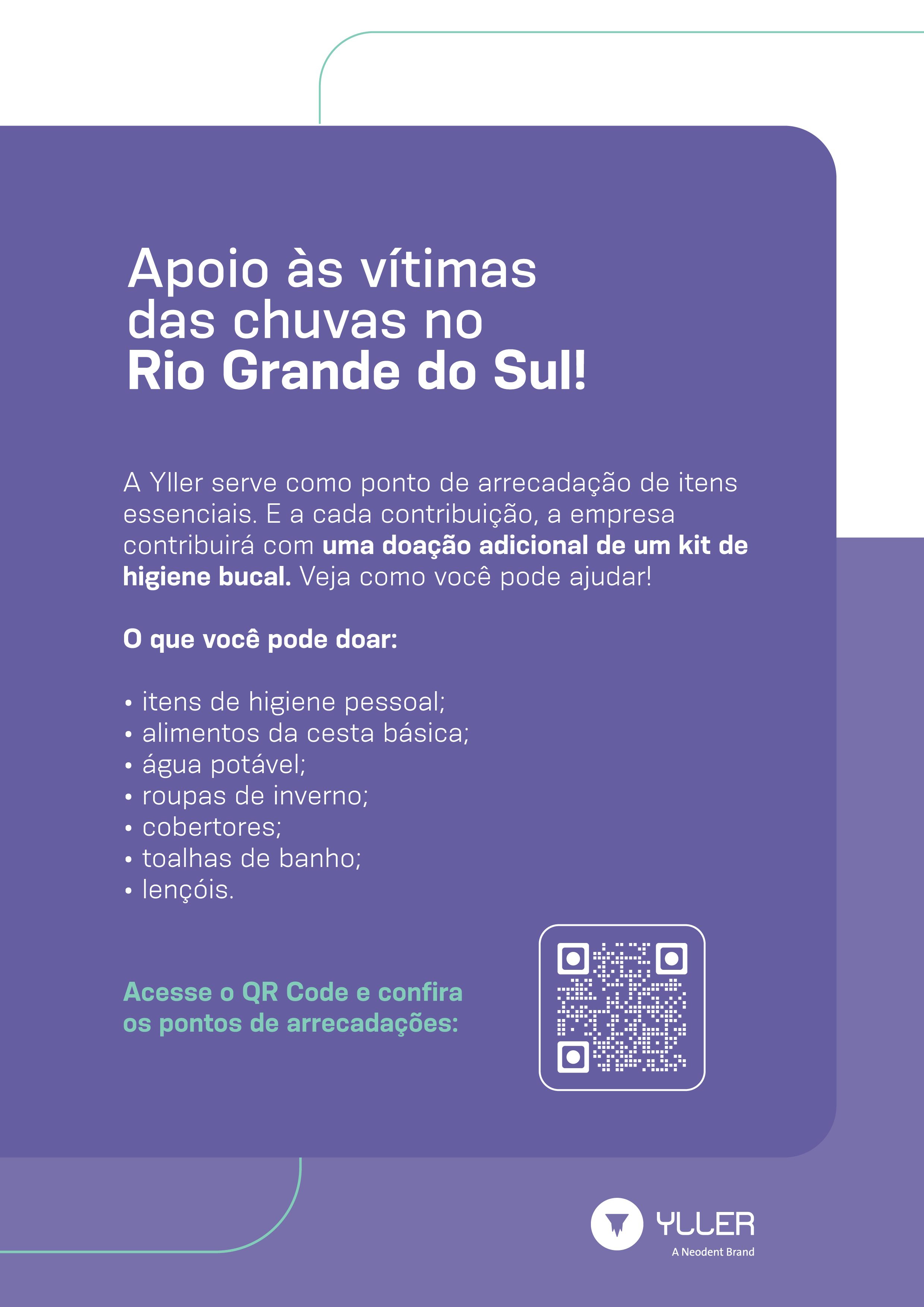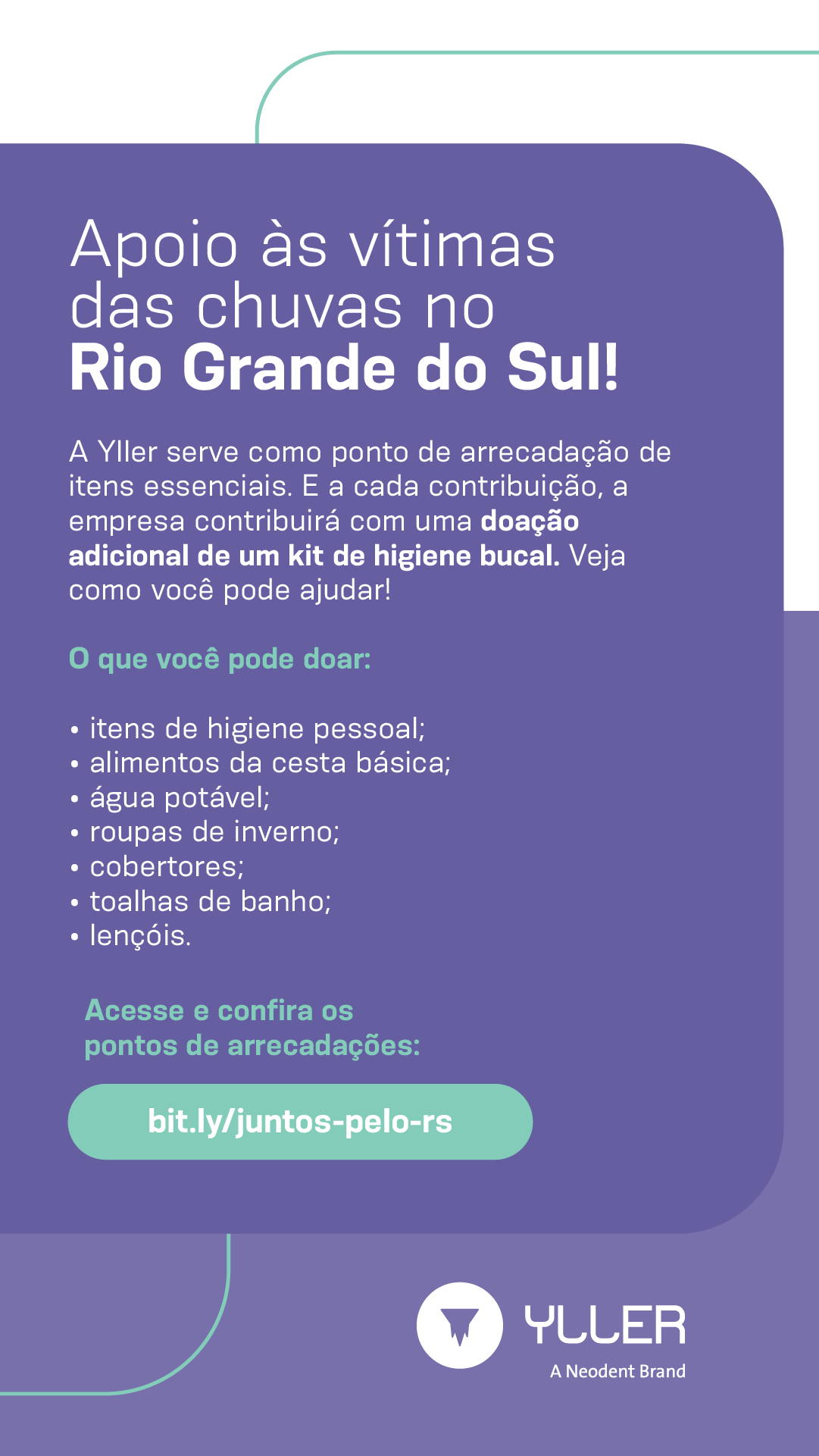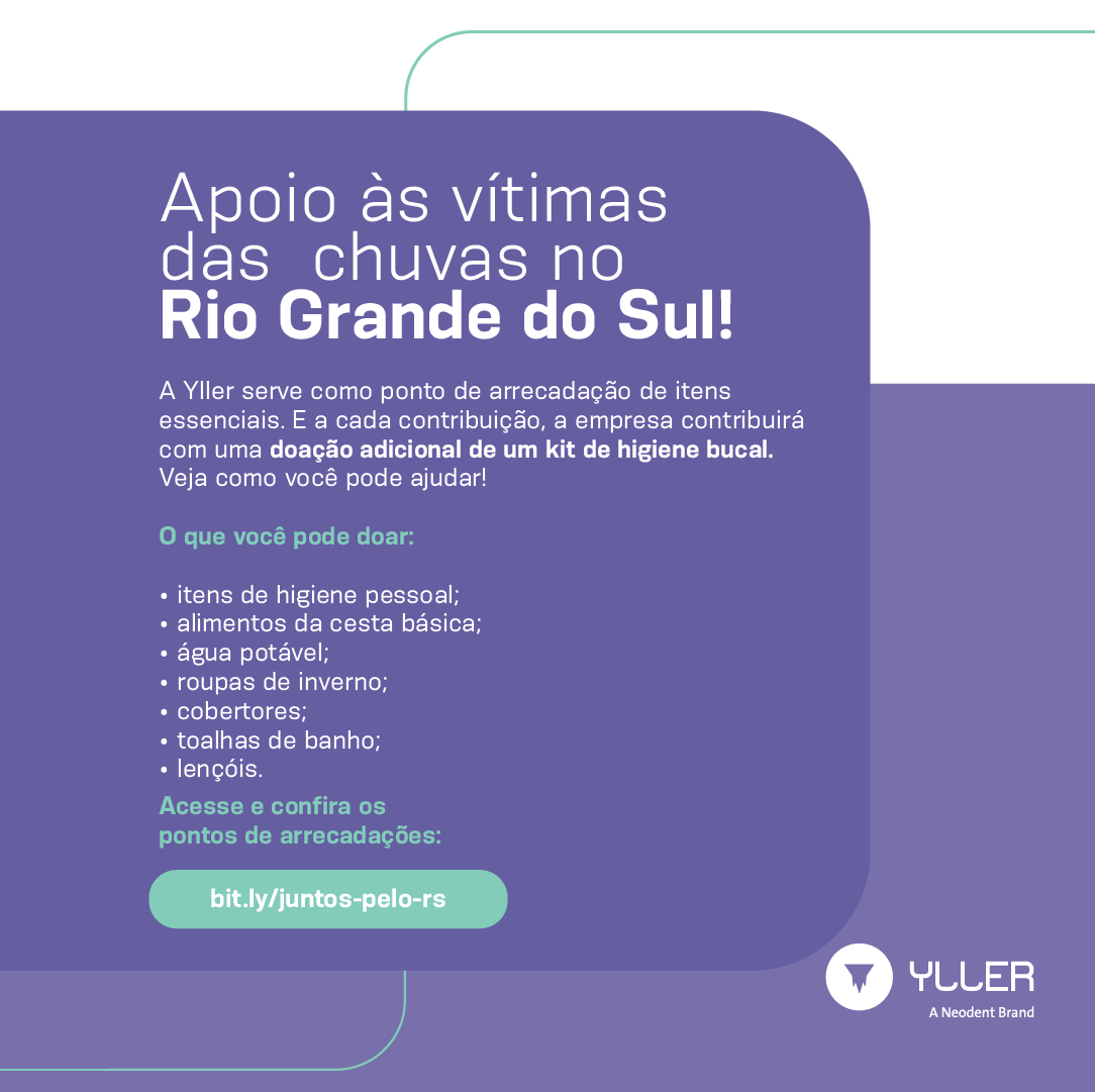 A nossa campanha de doação de itens para ajudar os desabrigados do RS, Você Doa agente dobra, foi finalizada no dia 31/Maio. Foram arrecadados um total de 23.450 itens e como contrapartida foram adquiridos 31.500 itens de higiene bucal contendo escova, pasta e fio dental. Totalizando 54.950 itens e distribuídos no RS.
